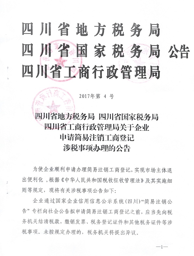 四川省地方税务局 四川省国家税务局 四川省工商行政管理局关于企业申请简易注销工商登记涉税事项办理的公告